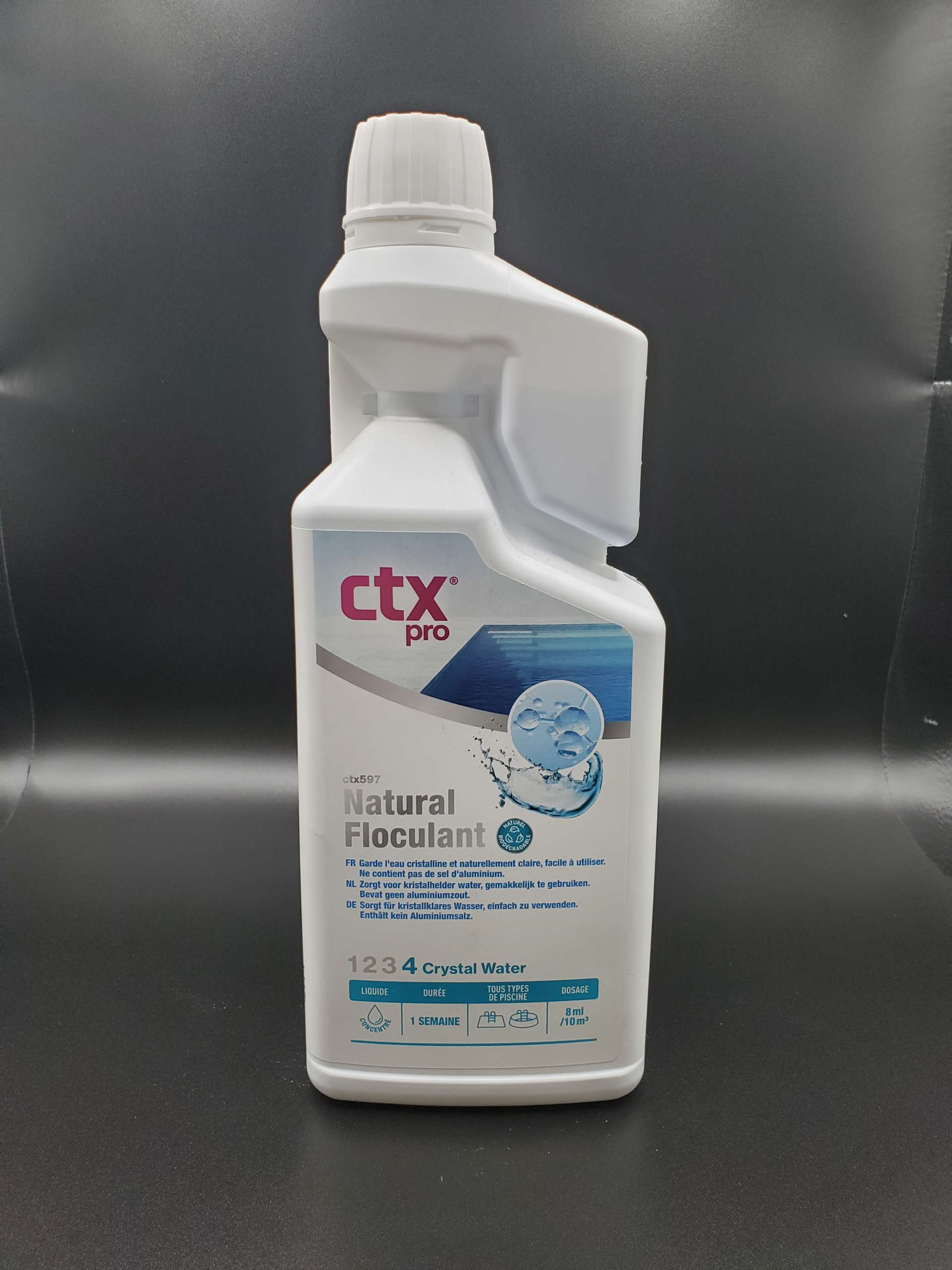Préservez une eau pure et sans résidus grâce au CTX 597 Natural Floculant, un clarifiant naturel et biodégradable à base de chitosane, conçu par CTX Pro. Compatible avec tous les désinfectants, ce floculant innovant concentre performance, respect de l’eau et facilité d’utilisation.