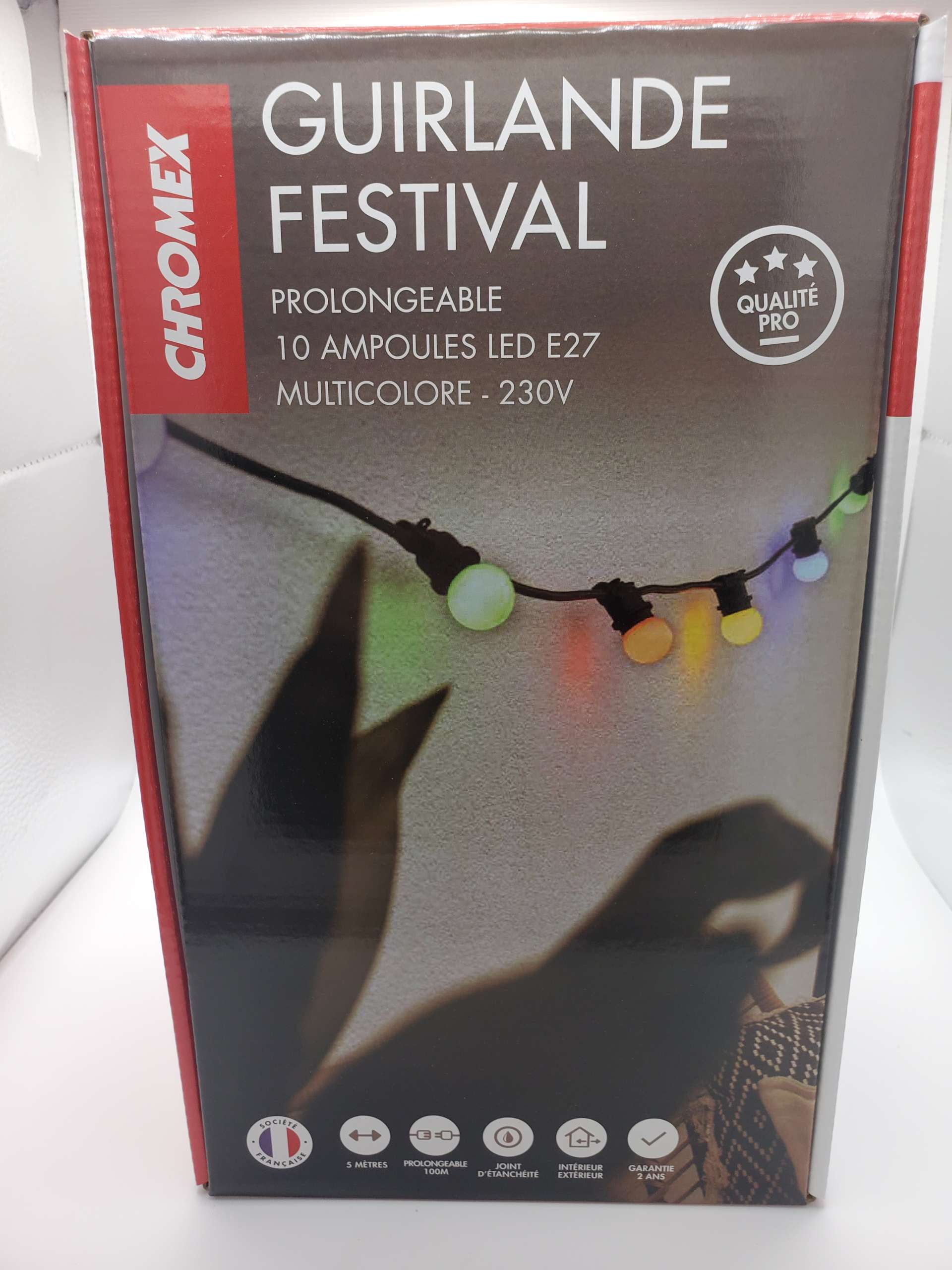 Créez une ambiance digne des bals Ménilmontant et apportez une touche festive à vos extérieurs avec ce kit de guirlande guinguette composé d’une guirlande câble noir de 5m, 10 douilles et de 10 ampoules E27 Jaune, rouge, vert, bleu et rose ! Indémodable ! Qualité professionnelle!